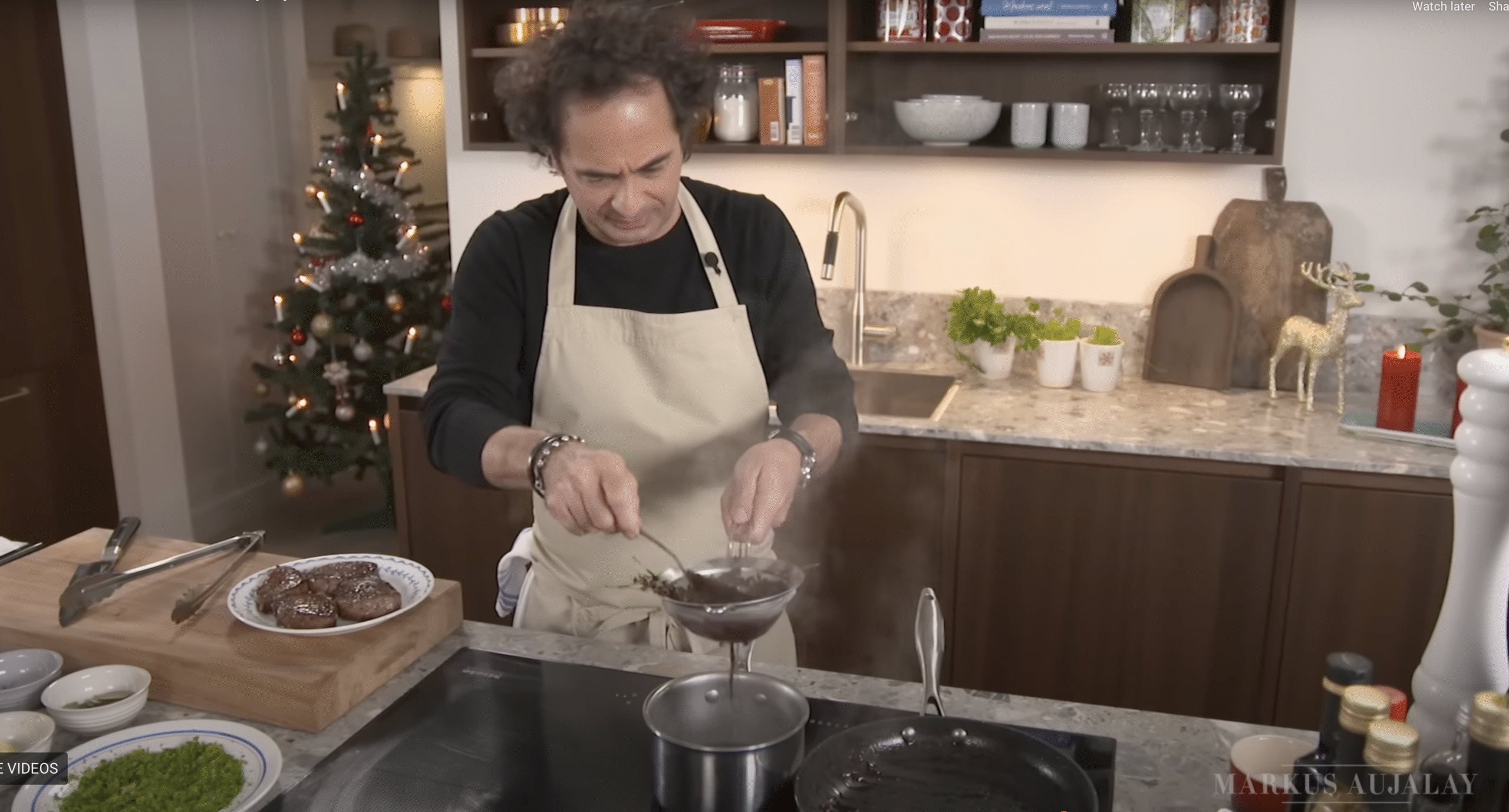 Vi börjar en helg i november. Då blir det grunden i alla restaurangers själ – en bra kalvfond. Sen använder vi den i en rödvinssås. Och till rödvinsås måste man ju ha lite annat gott…